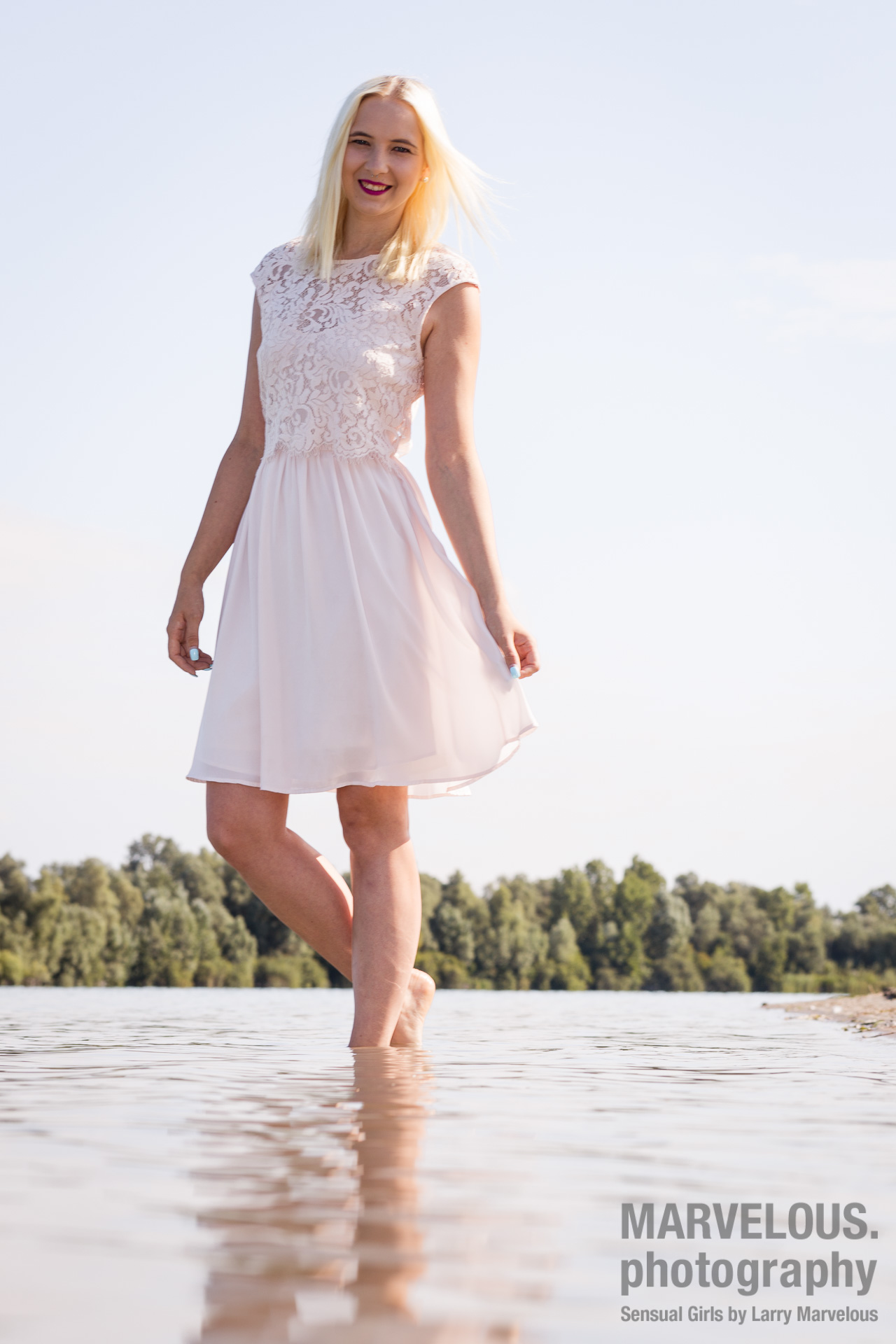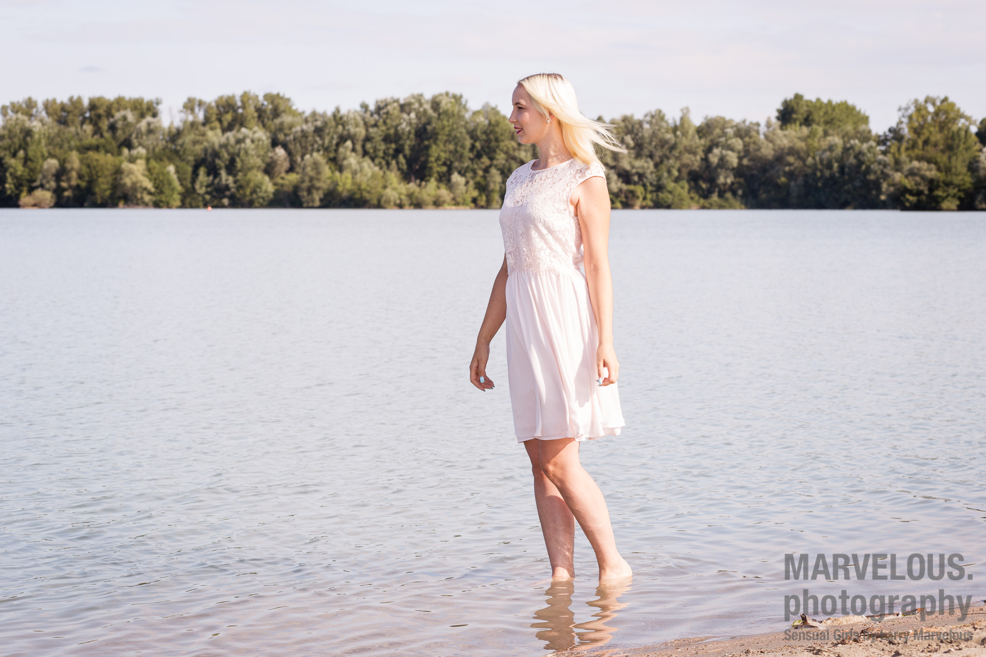 Dieses Mal haben wir verschiedene Outfits im und am Wasser und auch im Sand fotografiert. Insgesamt sind über 300 Bilder entstanden, die ich euch in der kommenden Zeit immer mal wieder in verschiedenen Bildersets präsentieren möchte. Den Anfang macht dieses Non-Nude Set mit einem stilvollen weißen Kleid am und im Wasser und einige Dessousfotos. Hier eine Auswahl: